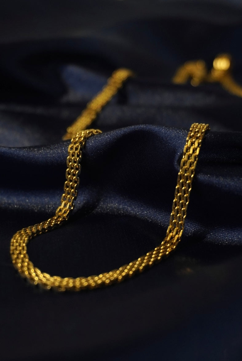 Gracias a su recubrimiento de oro de 18K, esta cadena luce exactamente como una de oro sólido, pero a una fracción del costo. Perfecta para realzar cualquier outfit, desde lo casual hasta lo formal.