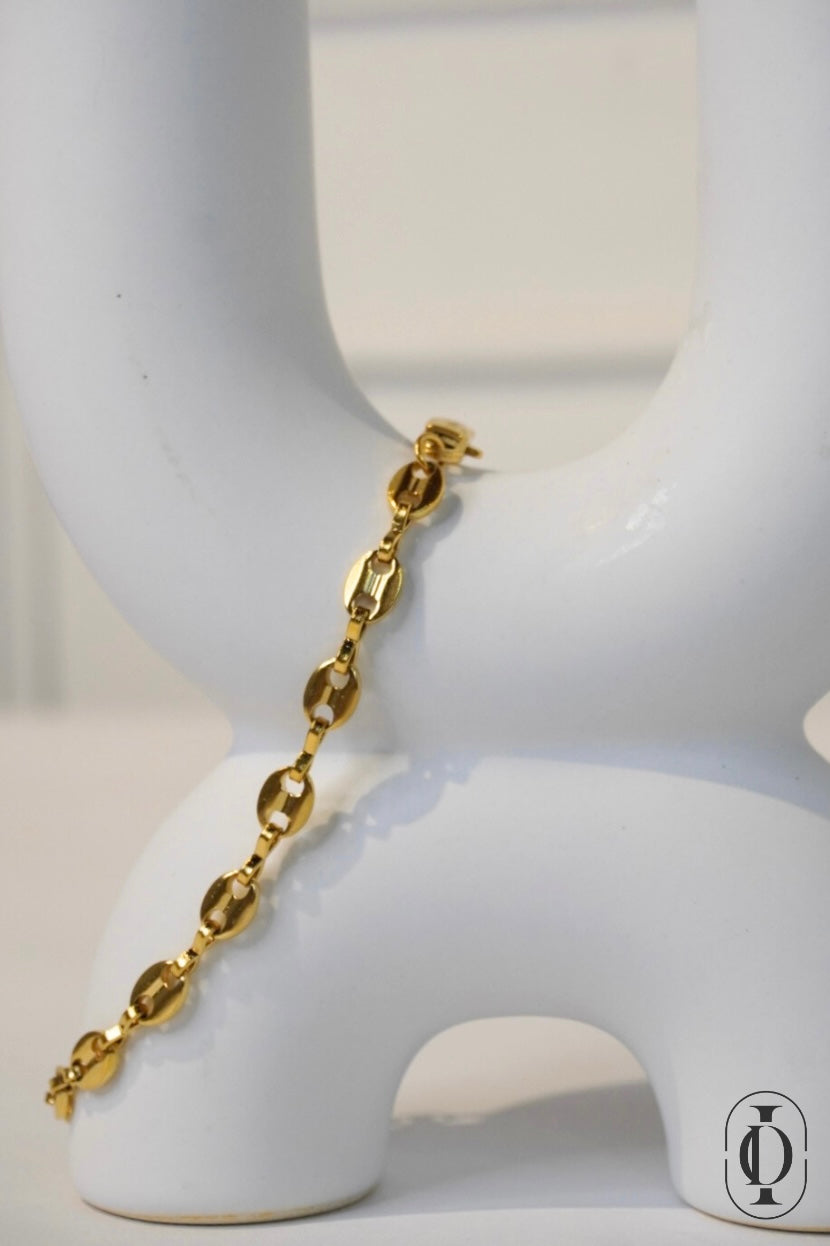 Este elegante combo incluye una cadena tipo Militar en oro laminado 18k, acompañada de una pulsera Gucci y un dije de cruz, perfecto para quienes buscan estilo, presencia y un toque de fe en su look diario.